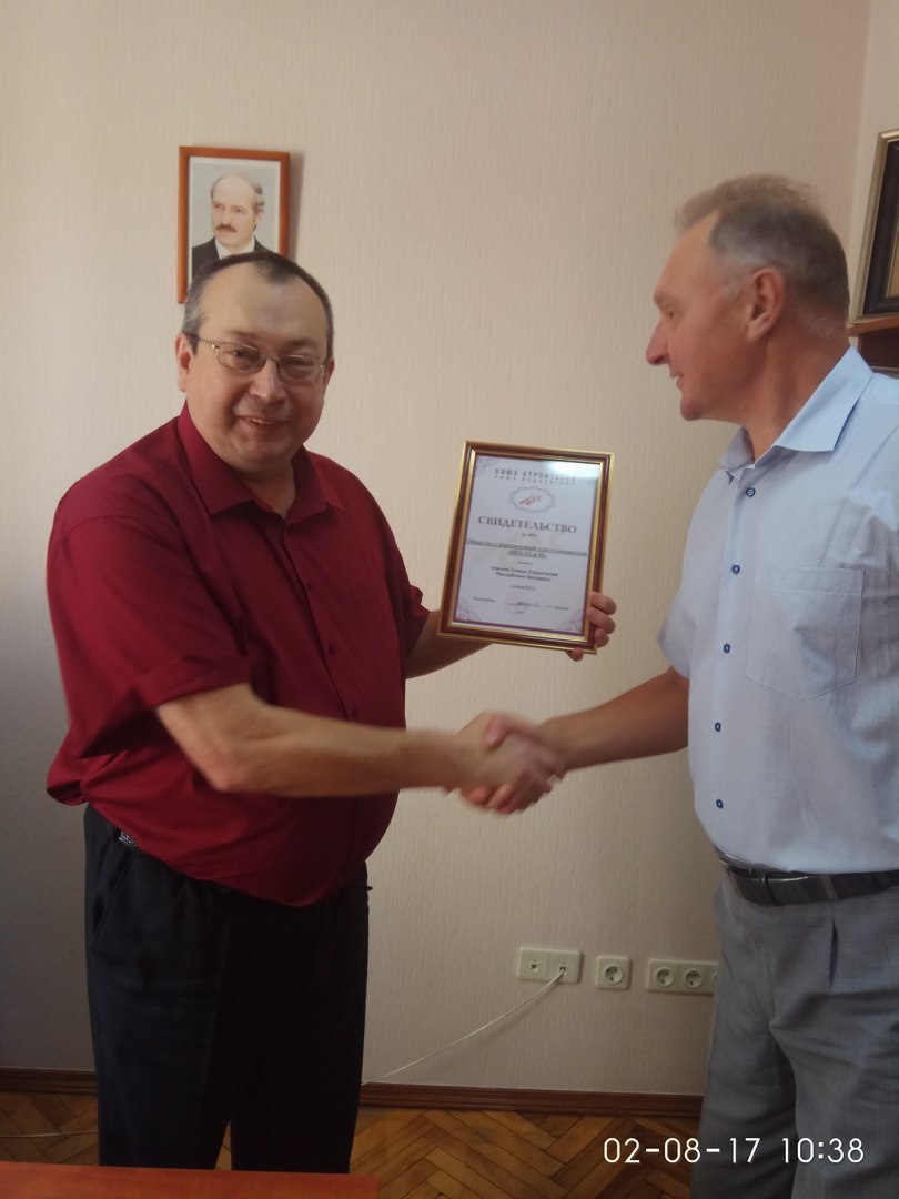 1 июля 2017 г - вступление в Союз строителей Республики Беларусь